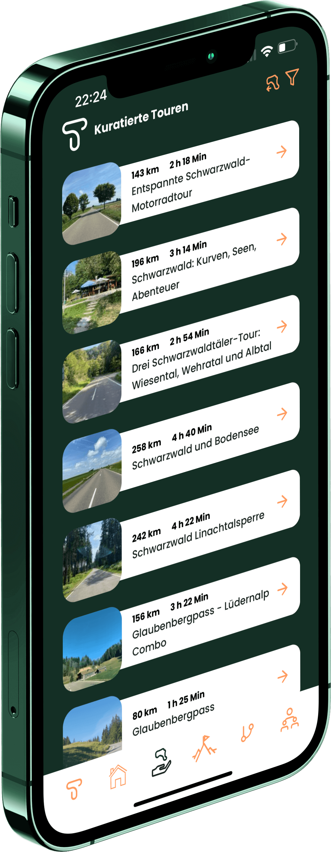 «The Tours» ist die App für alle, die den DACH-Raum auf zwei Rädern entdecken wollen – mit sorgfältig kuratierten Strecken, einfacher Routenplanung und echtem Community-Feeling. Unsere Touren sind von erfahrenen Motorradfahrern ausgewählt und bieten genau das, was du brauchst. Gleichzeitig planst du mit wenigen Klicks deine eigenen Routen oder organisierst Rideouts mit anderen. Ob solo oder in der Gruppe – mit The Tours wird aus jeder Ausfahrt ein Erlebnis.