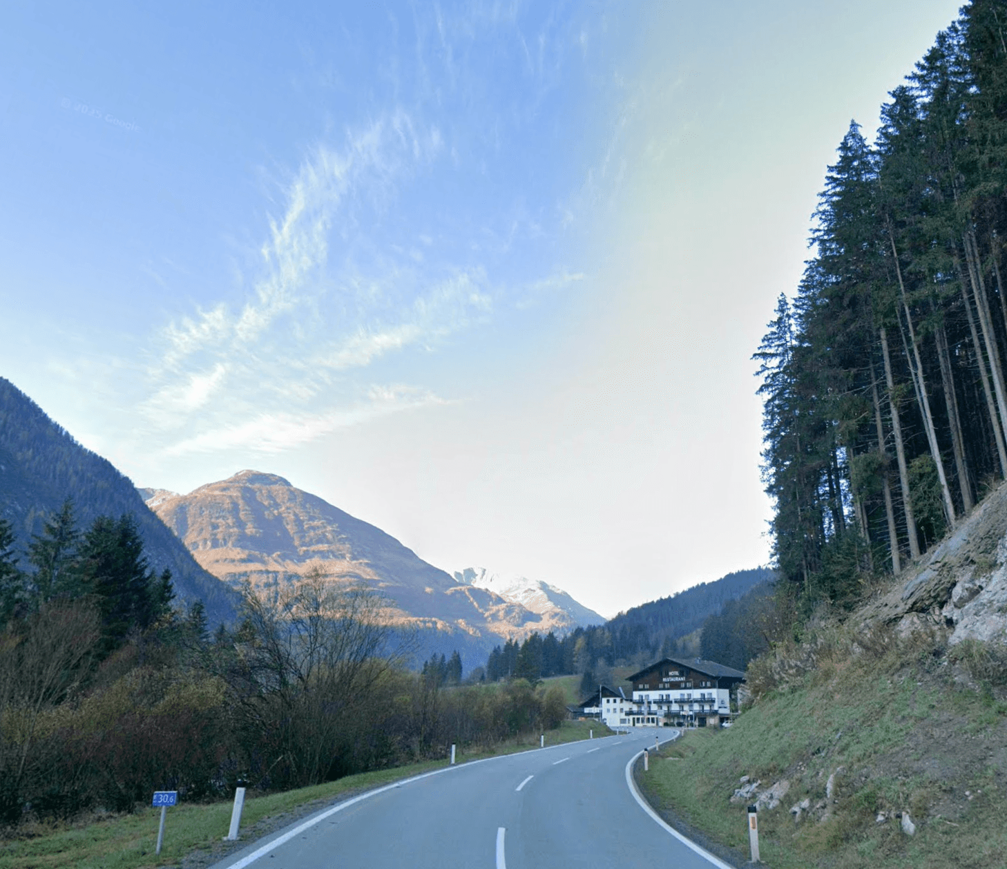 Nach dem Hochtannbergpass lädt der beliebte Kiosk Schmitte zur Pause ein. Die Strasse führt durch einige Tunnel, aber keiner davon ist besonders lang, was den Fahrern ein kontinuierliches Fahrerlebnis ermöglicht.