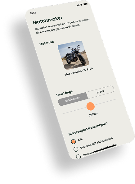Der Matchmaker (aktuell noch in der Beta-Version) erkennt deinen Fahrstil, deine Vorlieben sowie die aktuellen Wetter- und Strassenbedingungen und schlägt dir daraufbasierend Touren vor, die wirklich zu dir passen.