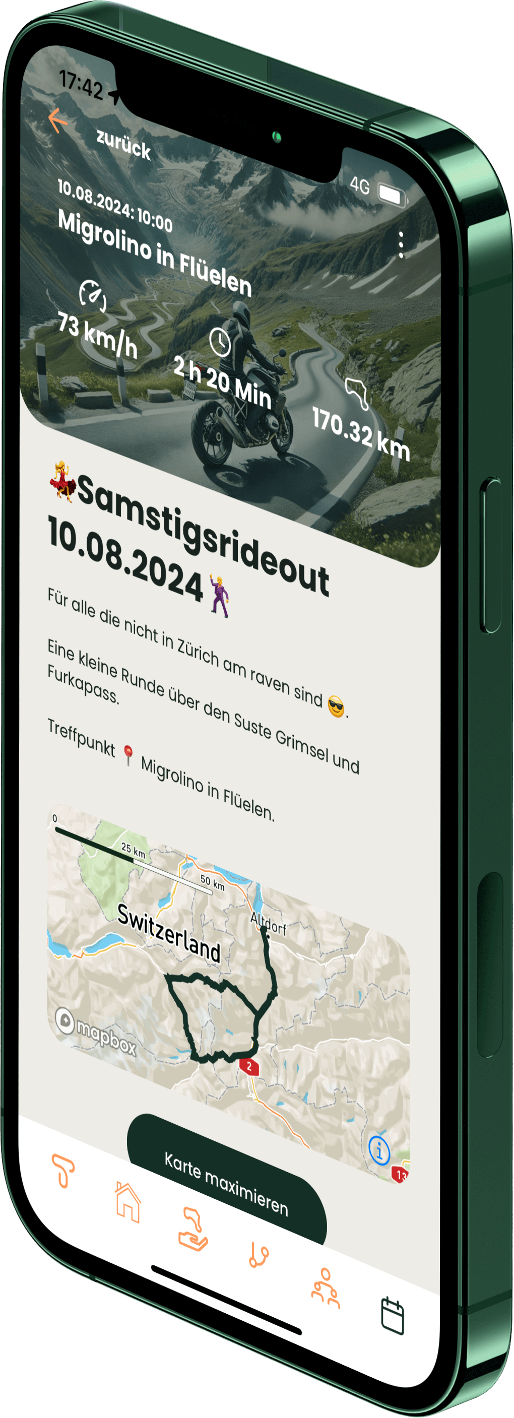 Unser Ziel ist es, unsere User noch mehr gemeinsam auf die Strasse zu bringen! Mit unserer App haben unsere User die Möglichkeit, eigene Rideouts zu organisieren, andere Motorradfahrer einzuladen und gemeinsam unvergessliche Touren zu erleben. Denn die besten Geschichten werden nicht alleine geschrieben, sondern zusammen auf der Strasse!