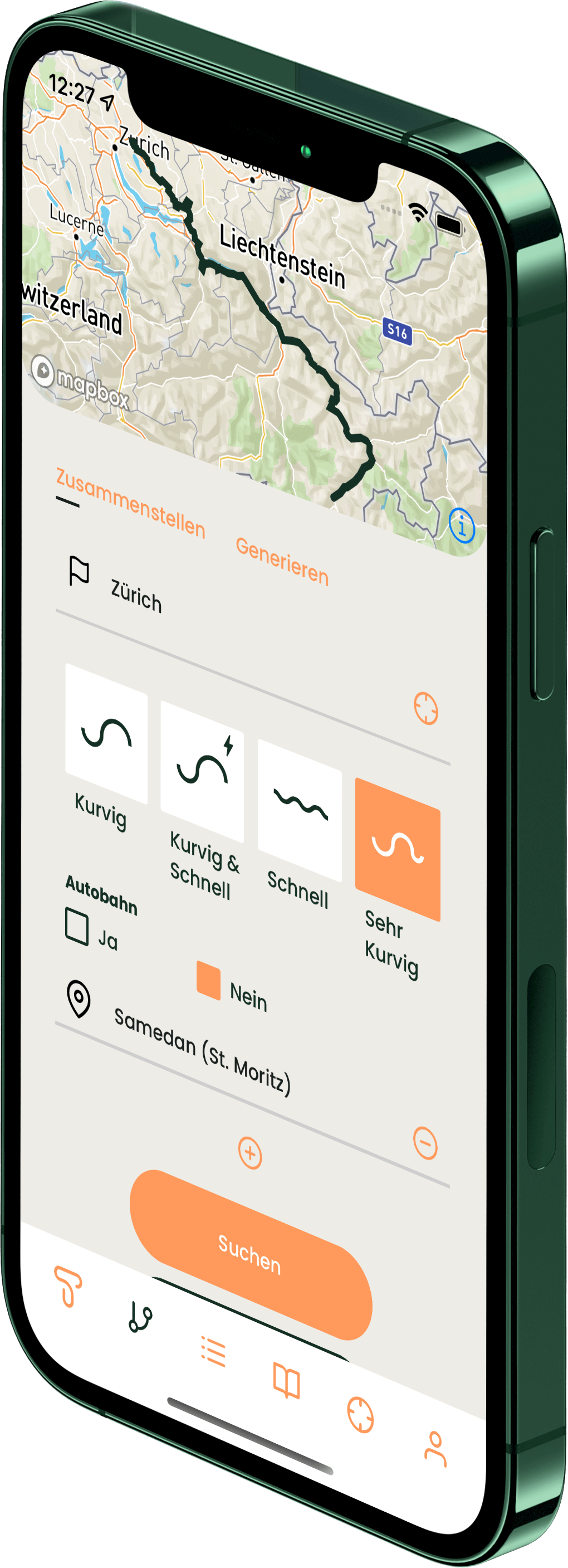 Erspar dir eine aufwändige Planung auf GoogleMaps. Wähle deinen Start und bestimme ob deine Tour sehr kurvig, kurvig, kurvig und schnell oder einfach nur schnell sein soll. Wähle deine Stationen und dein Ziel und schon geht’s los. Du kannst deine Touren jederzeit speichern und mit andern teilen