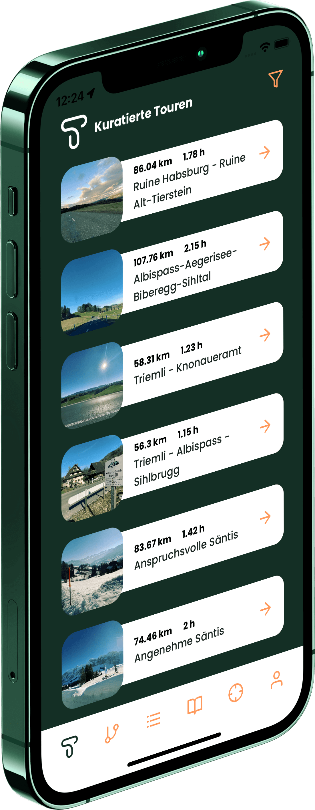 Hier findest du eine kleine Auswahl unserer kuratierten Touren. Viele weitere Strecken warten in der App auf dich.